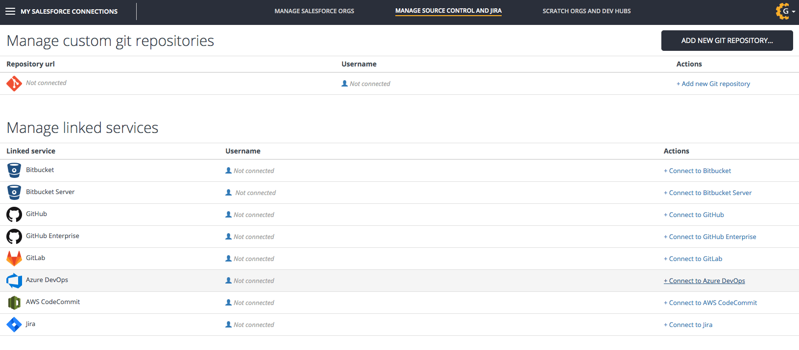 To get started with this feature, first make sure you have an Azure DevOps connection saved. To add a new connection, head to Manage source control and Jira and click + Connect to Azure DevOps. If you have an existing connection that was made before the 28th of February, you’ll need to delete and re-add your connection.