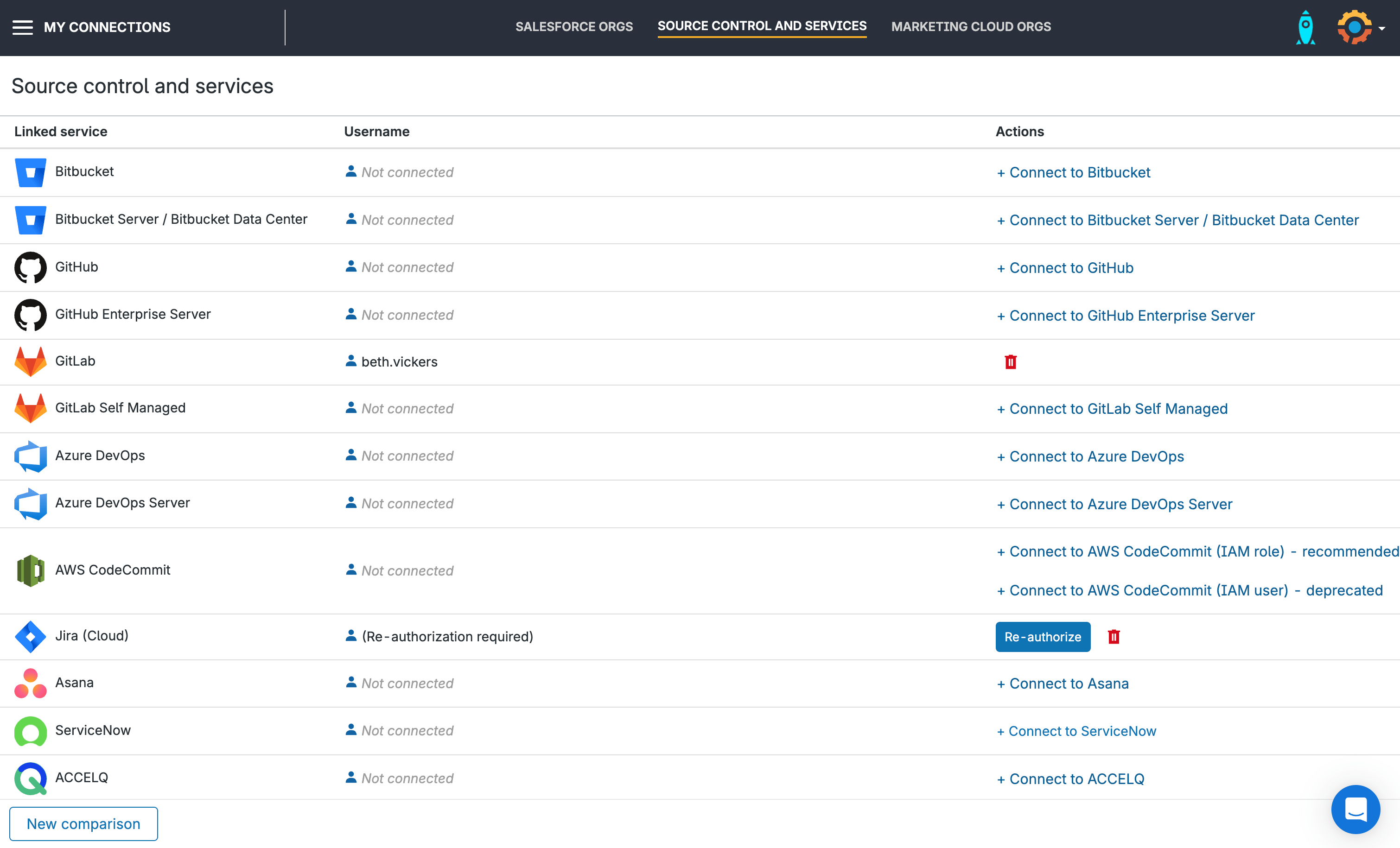 Gearset integrates easily with GitLab using secure OAuth — the same approach used to connect Salesforce orgs. That means you can track and deploy changes from your GitLab repo through your full release pipeline, regardless of where the merge request was opened.