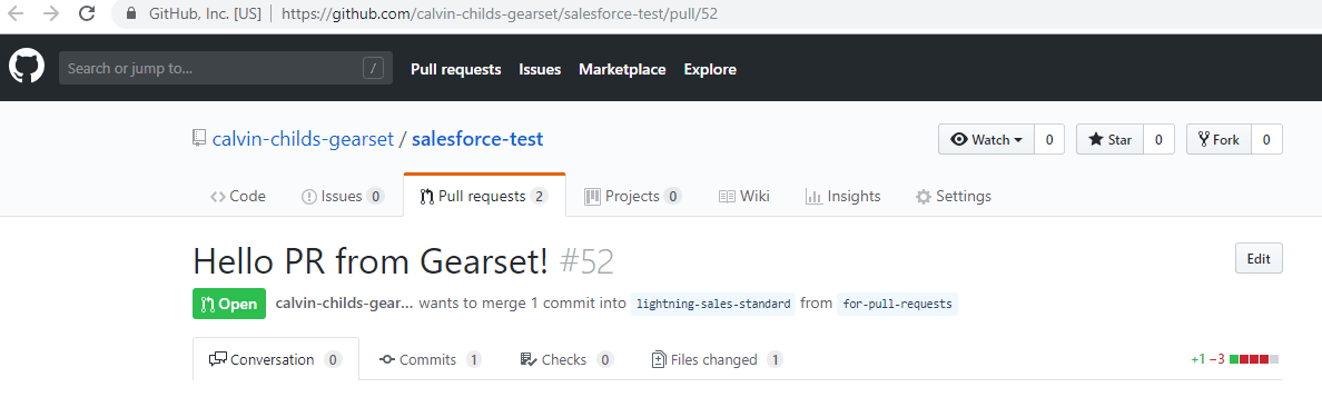 When working with source control orgs in Gearset, it’s common to adopt a typical Git workflow for feature development and bug fixes. When work starts on a new work item, a developer or admin would create a feature branch, then iteratively make their changes and test until the feature or fix is ready, at which point the feature branch would be merged into the release version of the app via a pull request. In the latest release of Gearset, GitHub users can now create a pull request from a feature branch in just a few clicks, without having to use the GitHub UI.