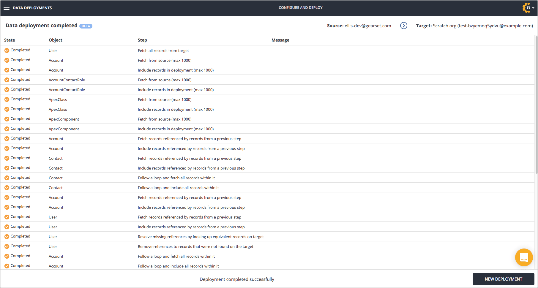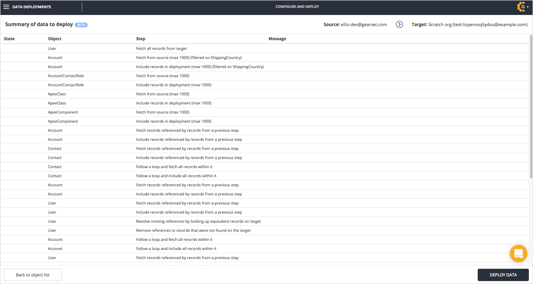 - Gearset will then determine and list out the steps about to be taken in your data deployment.