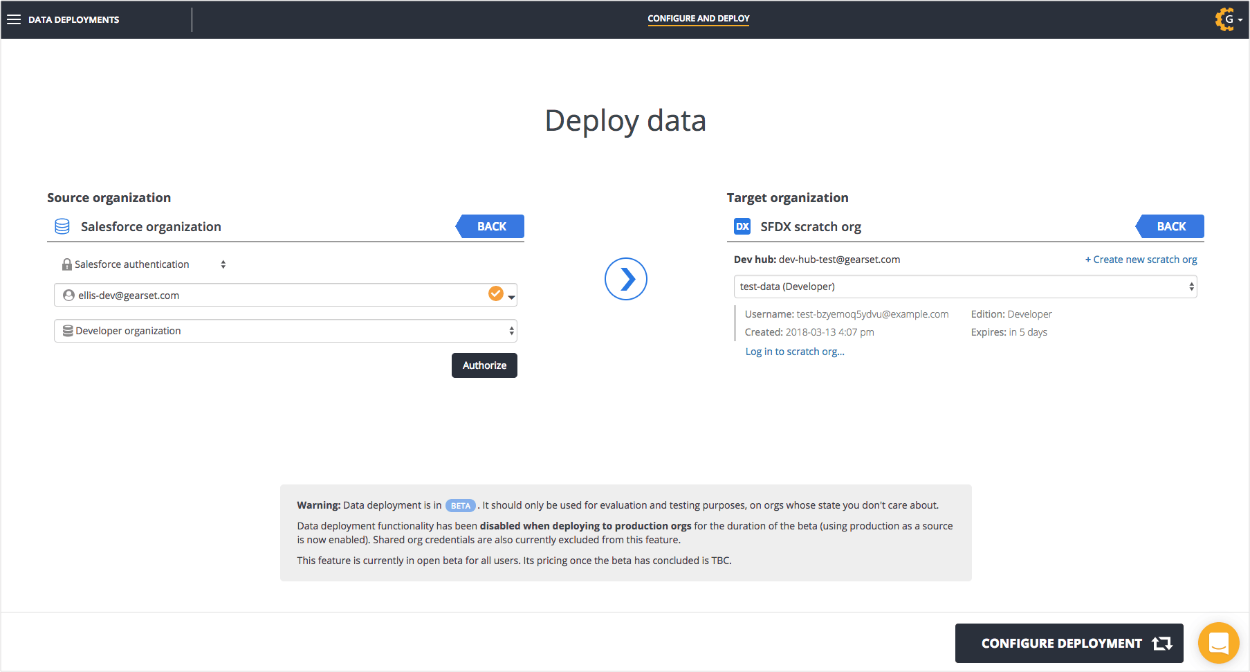 Configure deployment. - You can also deploy data to and from Salesforce DX scratch orgs.
