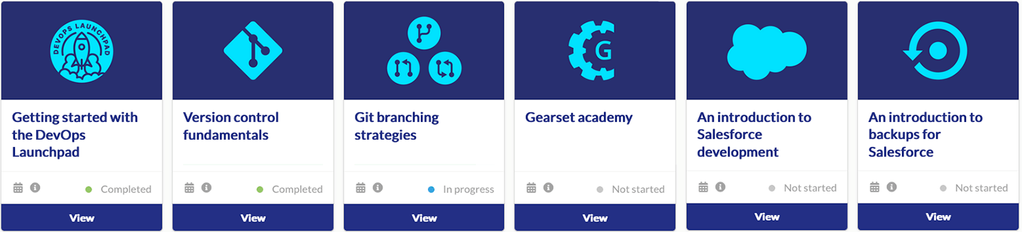Other courses that can already be accessed include the introductory course on how to navigate and get started with DevOps Launchpad. For Gearset users, we’ve also included our Gearset academy, a structured learning programme that walks you through the key features of Gearset and shows you how to automate and improve all aspects of your Salesforce DevOps.