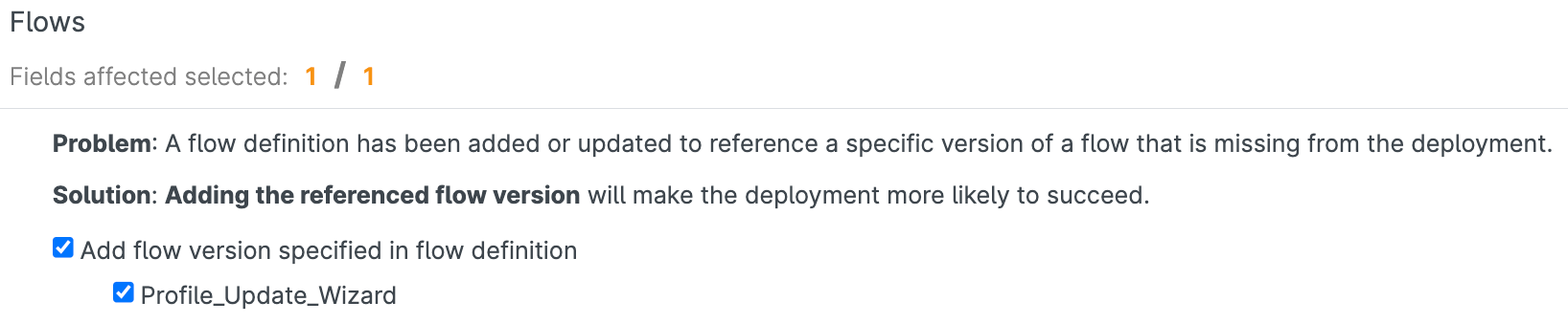 Since there are various ways Flow deployments can fail, Gearset also has a number of problem analyzers specifically for Flows and Flow Definitions.