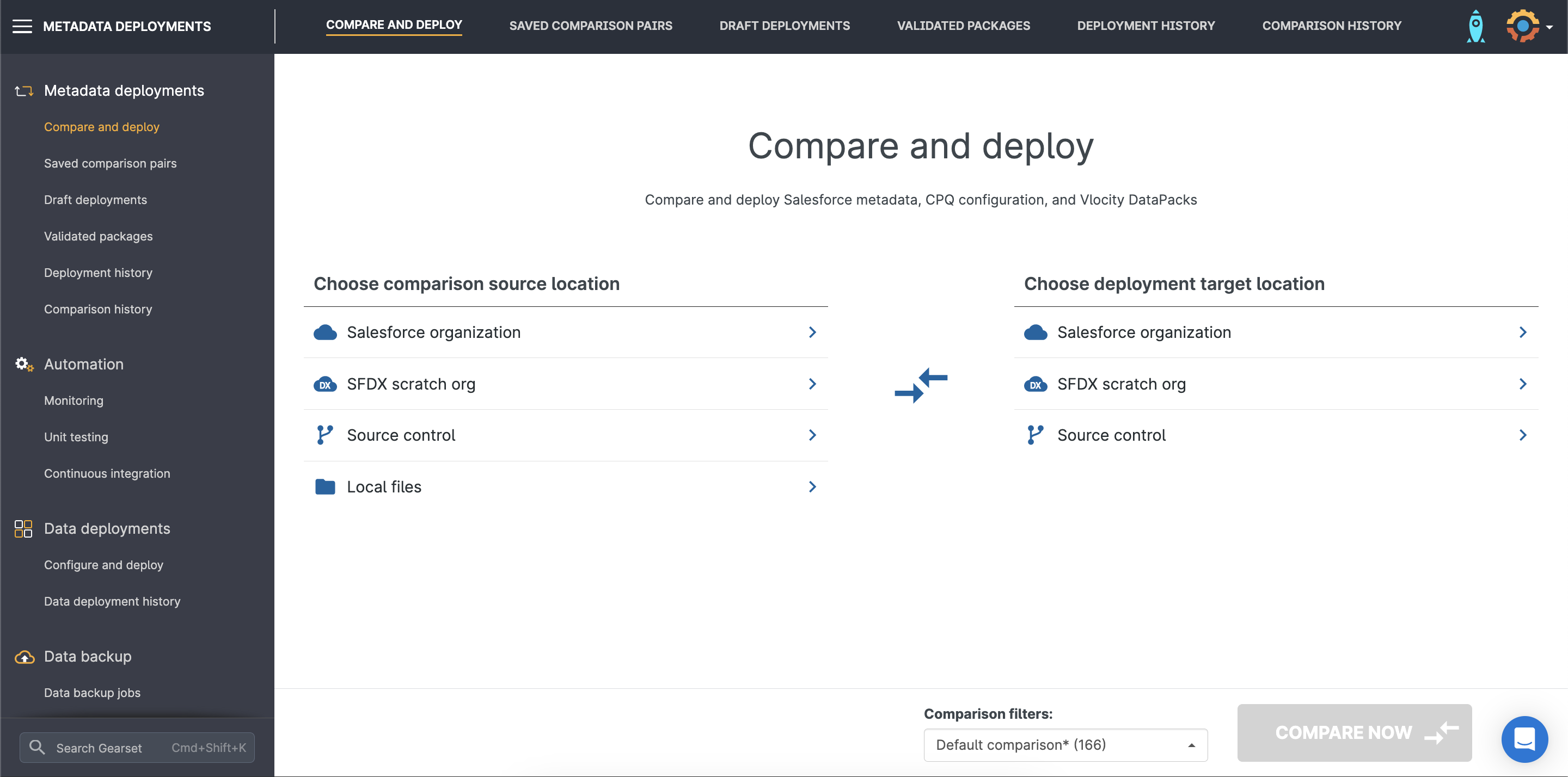 Book a consultation with one of our Salesforce experts to learn how you can integrate your full stack in one release process. And start a 30-day free trial today with nothing to install in your orgs and instant access to all features to see how easy it can be.
