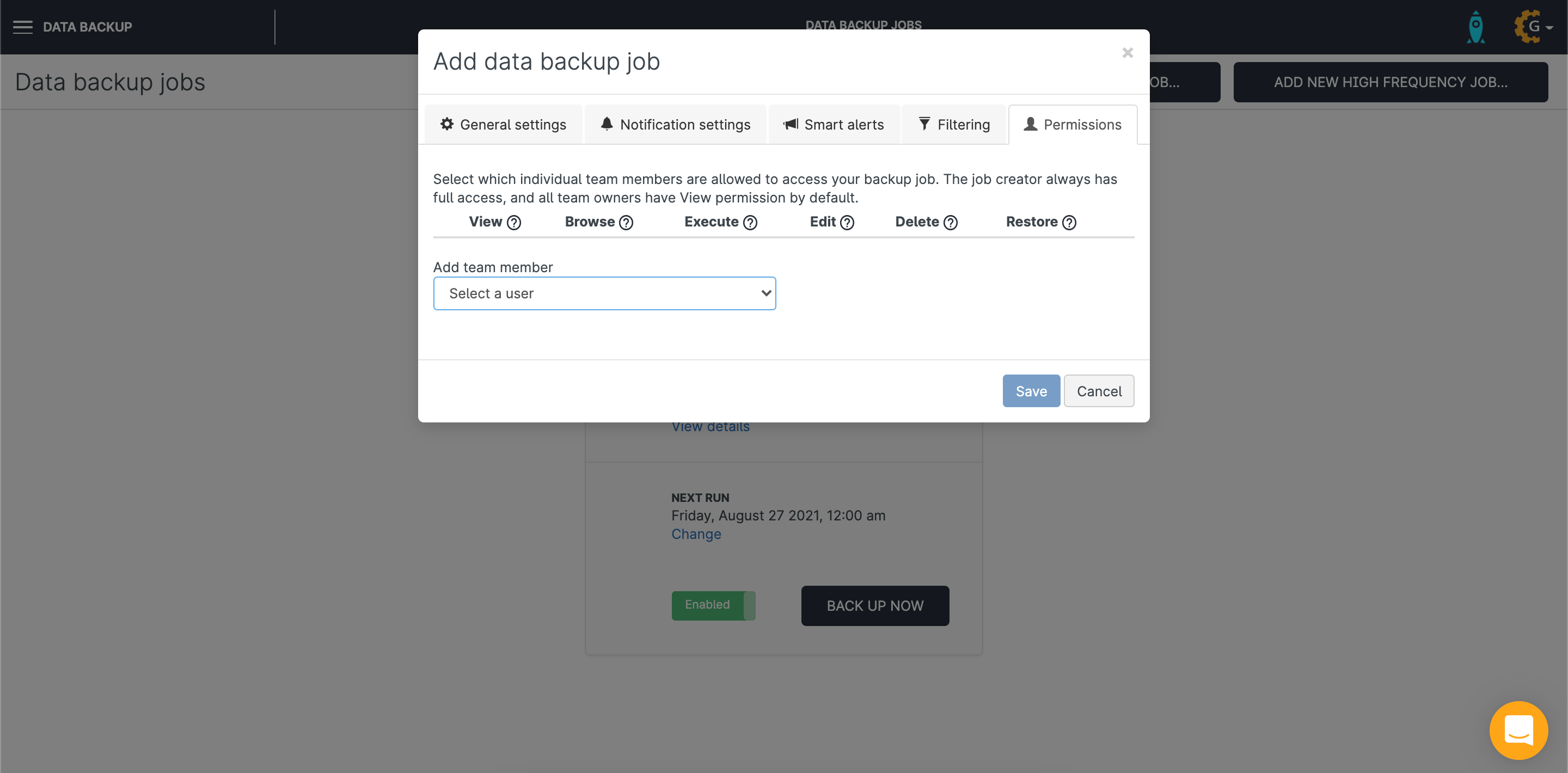 - Execute: run, reschedule, enable and disable the backup job