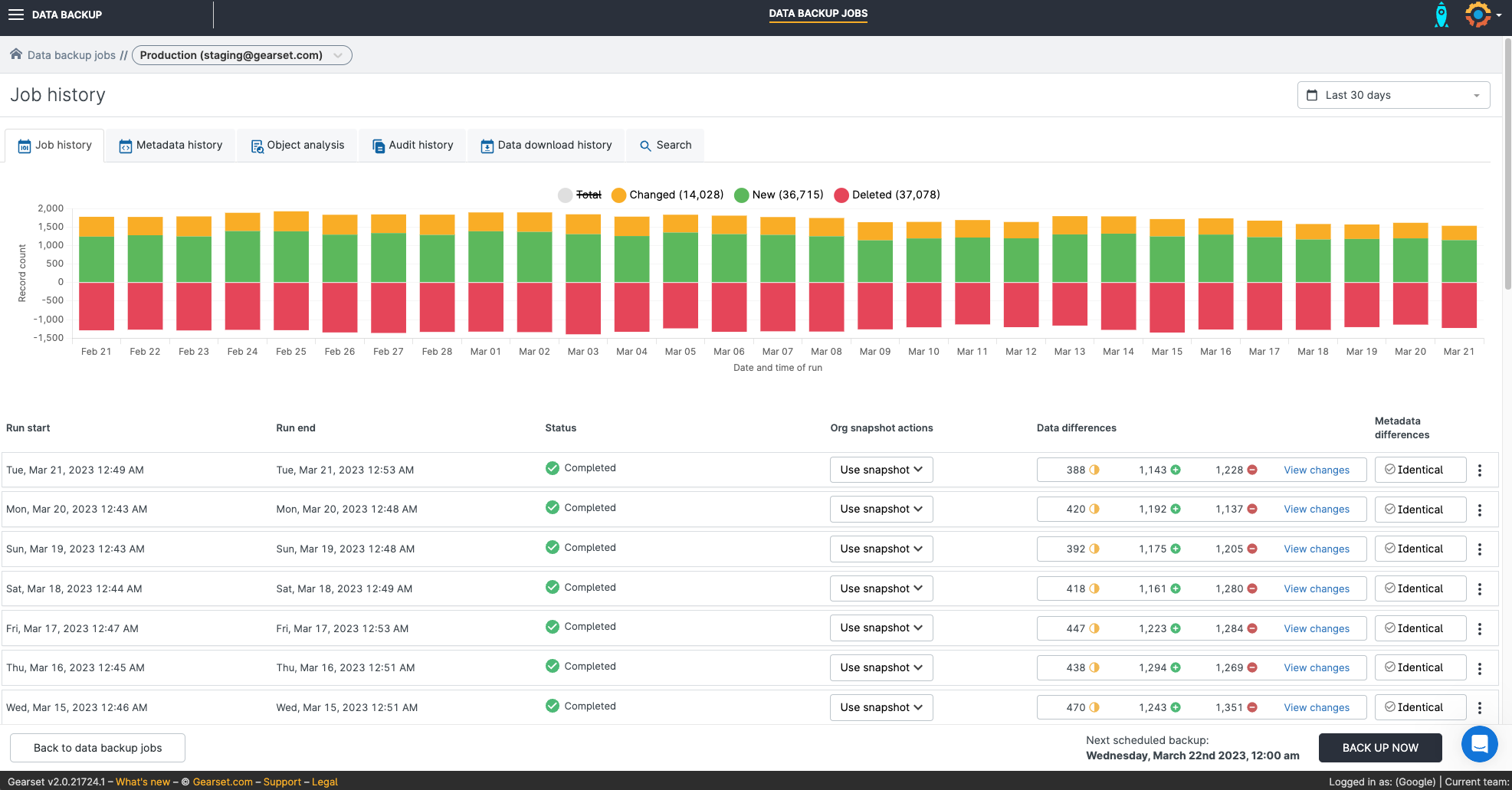 Short recovery times are your insurance policy against any damage to your org, whether it’s caused by human error, a release or integration gone badly wrong, or any other incident. Automated backups with a powerful restore tool are necessary to ensure you can recover from any data loss in as little time as possible.