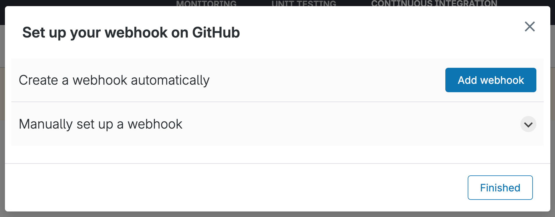 Click Add webhook and Gearset will automatically create one for you. You can also manually set one up. The webhook allows Gearset to sync in real time with your Git repositories and branches.