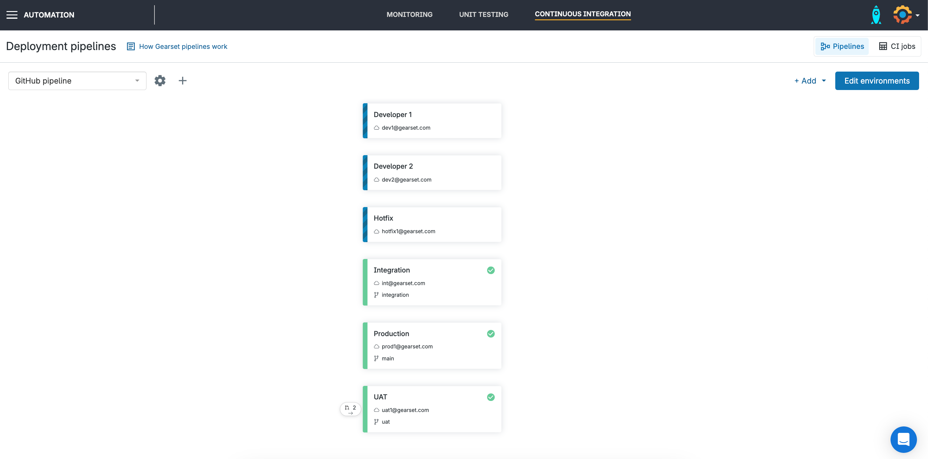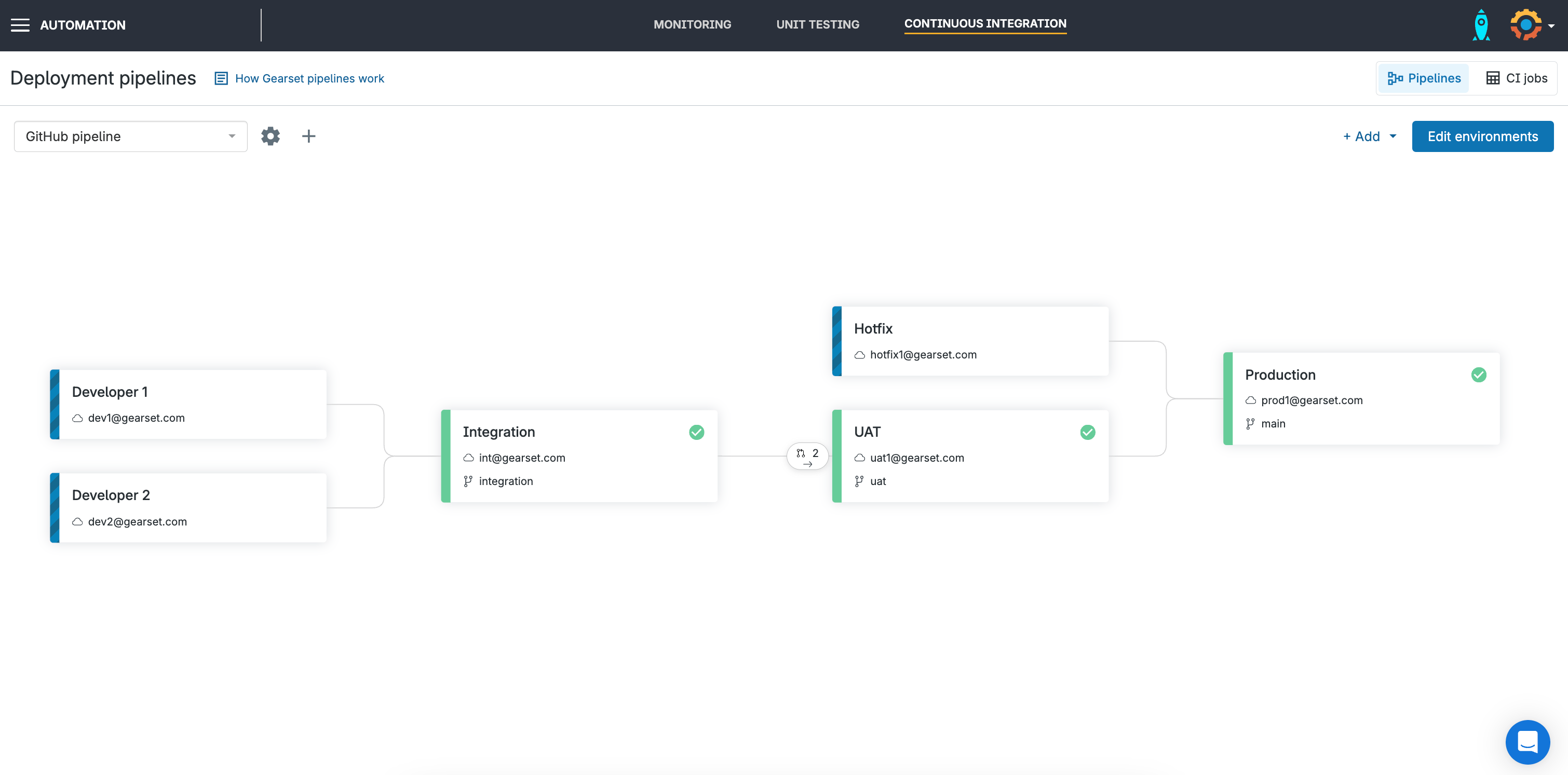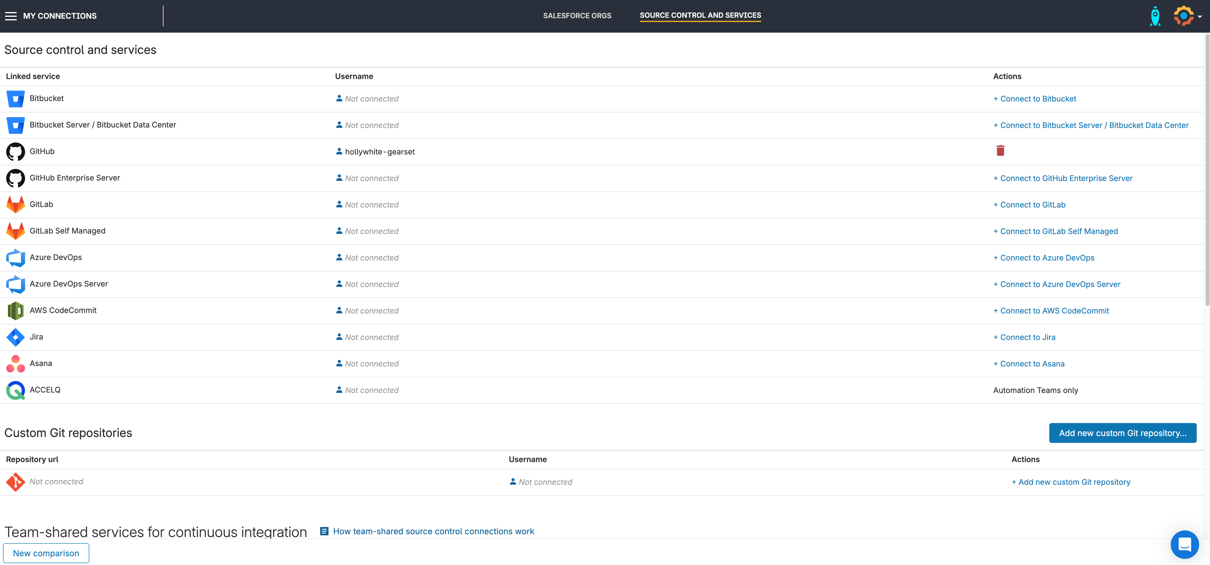 Gearset supports all the Git-based providers mentioned above (and more!). Once you’ve connected your version control to Gearset, you can build a seamless DevOps process, committing metadata to Git and deploying to your orgs. You can then build a CI/CD pipeline in Gearset’s Pipelines, giving you and your team better visibility and control of all your changes.