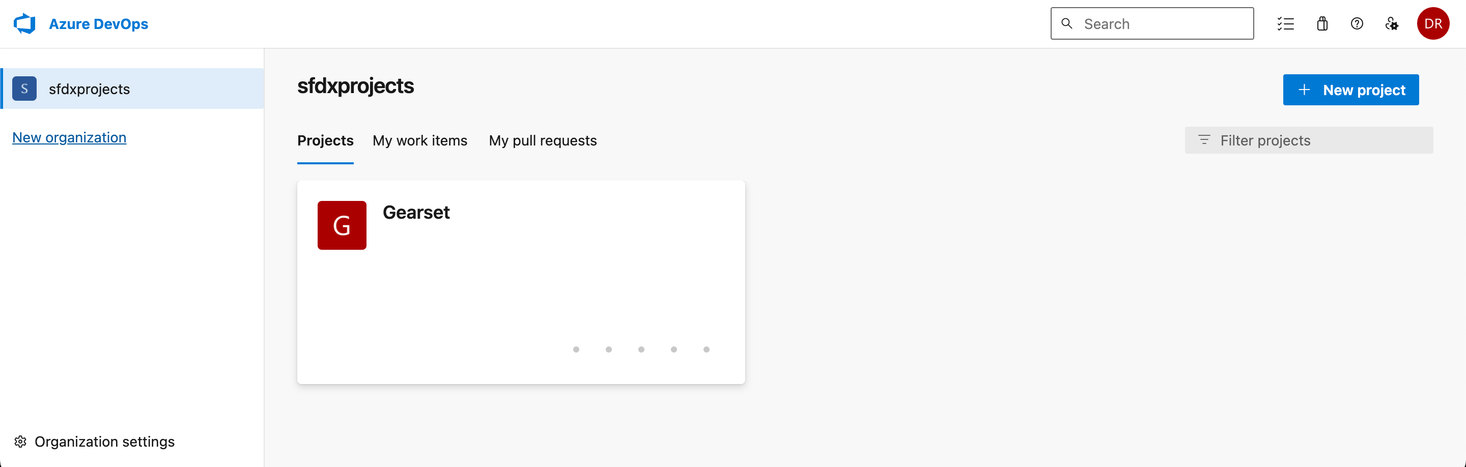 Before we can create our Salesforce DevOps pipeline, we need to connect Azure DevOps to Gearset. First, open Azure DevOps, and click Organization settings in the bottom-left corner.
