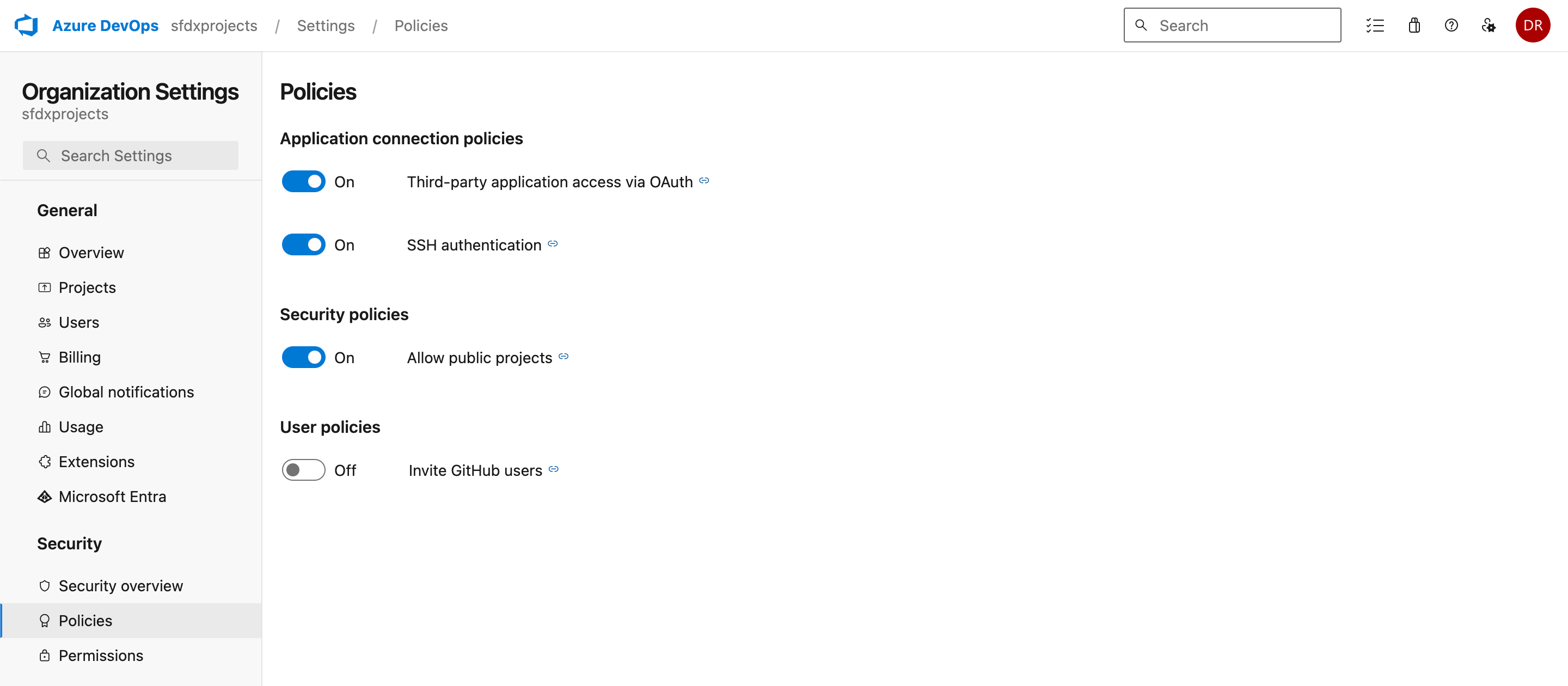 Select Policies from the left-hand menu, and make sure that Third-party application access via OAuth is toggled to On.