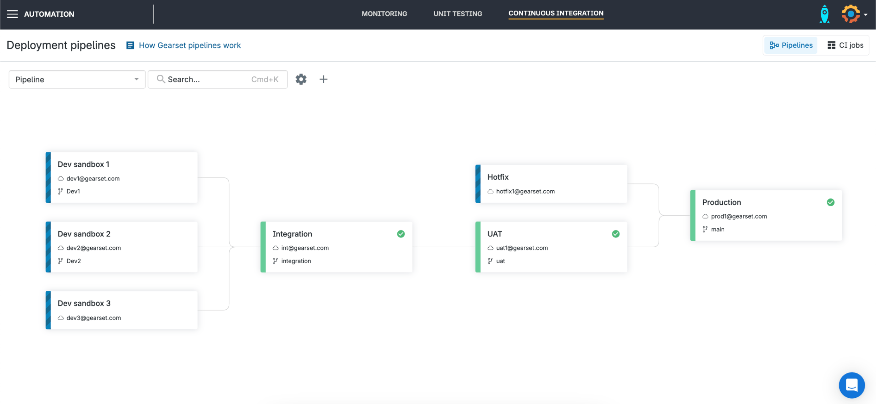 Gearset integrates with both Azure DevOps and Azure DevOps Server, and provides a CI/CD pipelines solution built specifically for Salesforce. With Gearset you can: