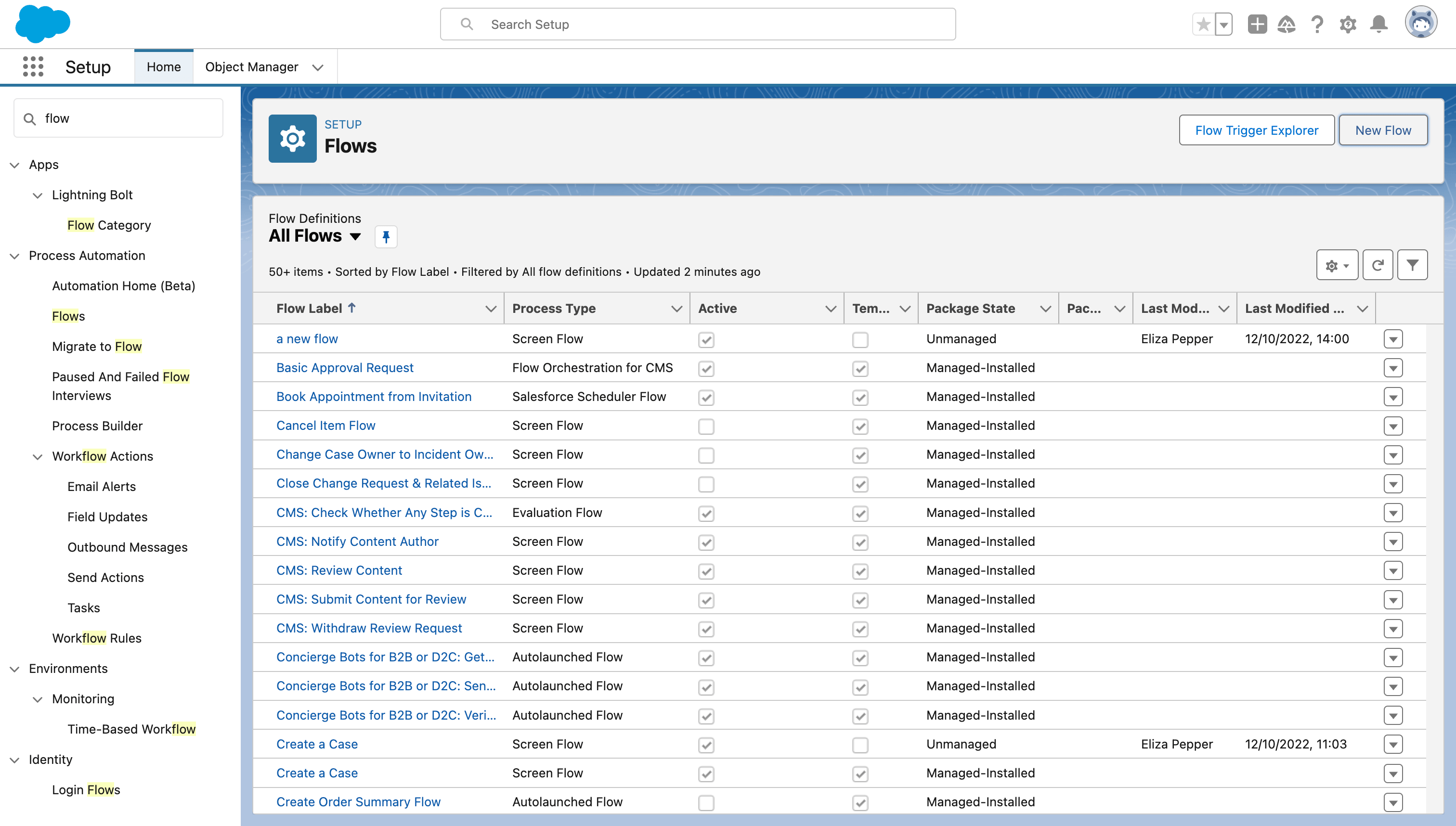 Both Flow types have their place — you’ll want to use Record-Triggered Flows to perform specific actions like notifying customers the time of a meeting has changed, and Schedule-Triggered Flows to maintain org health and consistency, such as updating Account Objects to change contract statuses.