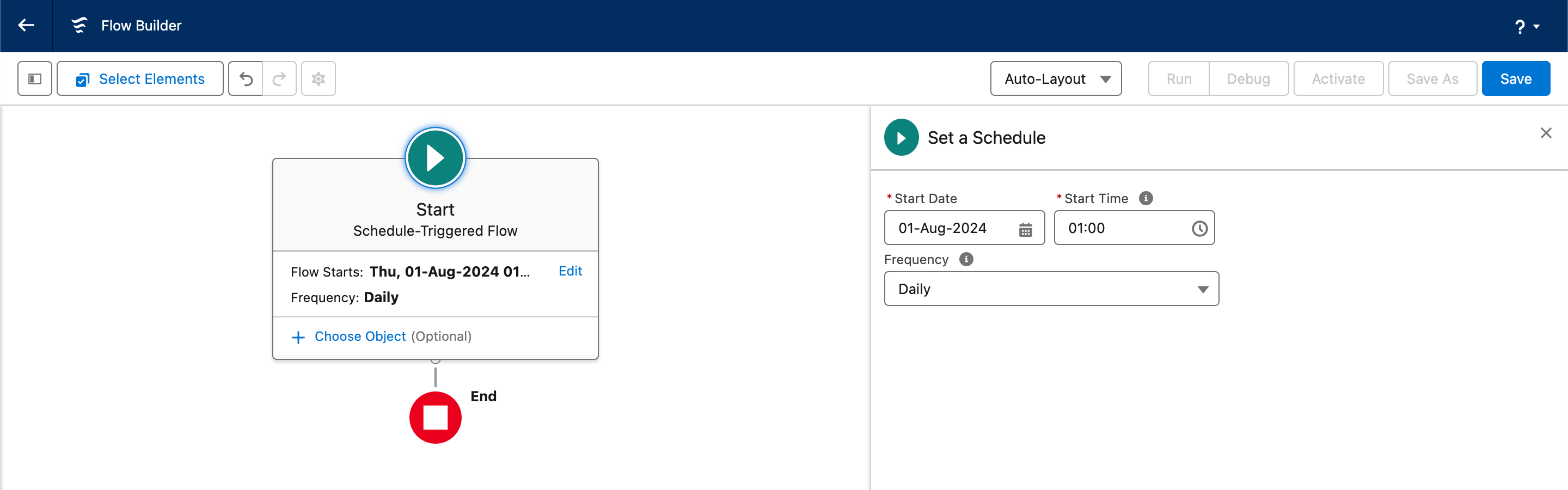 From the Flows section in Salesforce’s setup view, click New Flow. Select Start From Scratch, then Schedule-Triggered Flow.