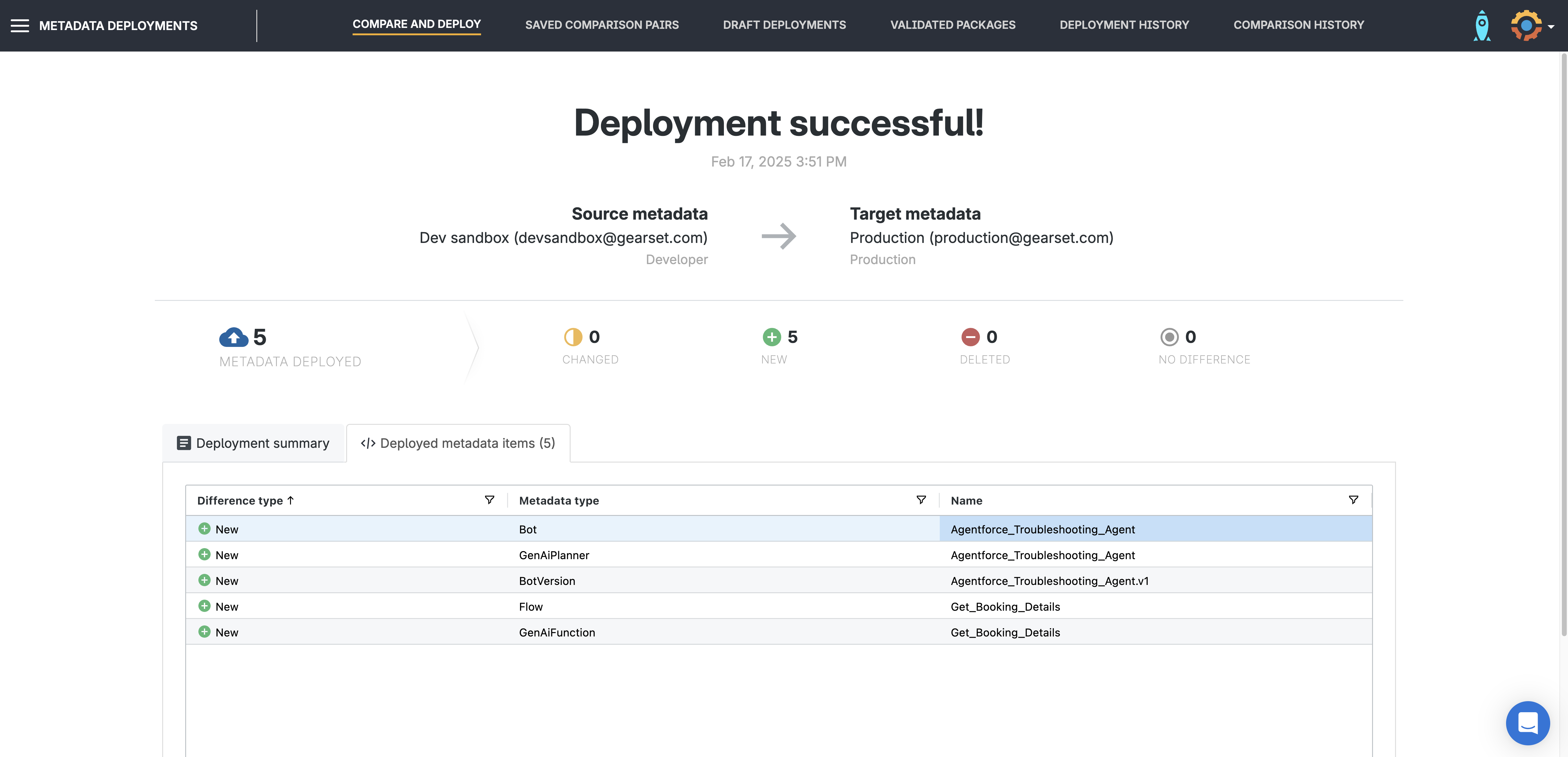 Deploying Agents doesn’t need to be difficult — Gearset makes the process easy. Log in, or sign up to your 30-day free trial to follow along with this Service Agent deployment.