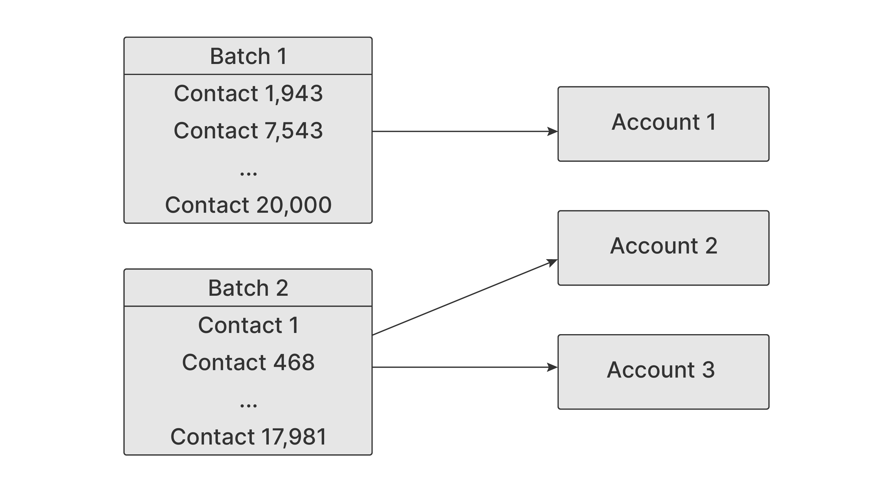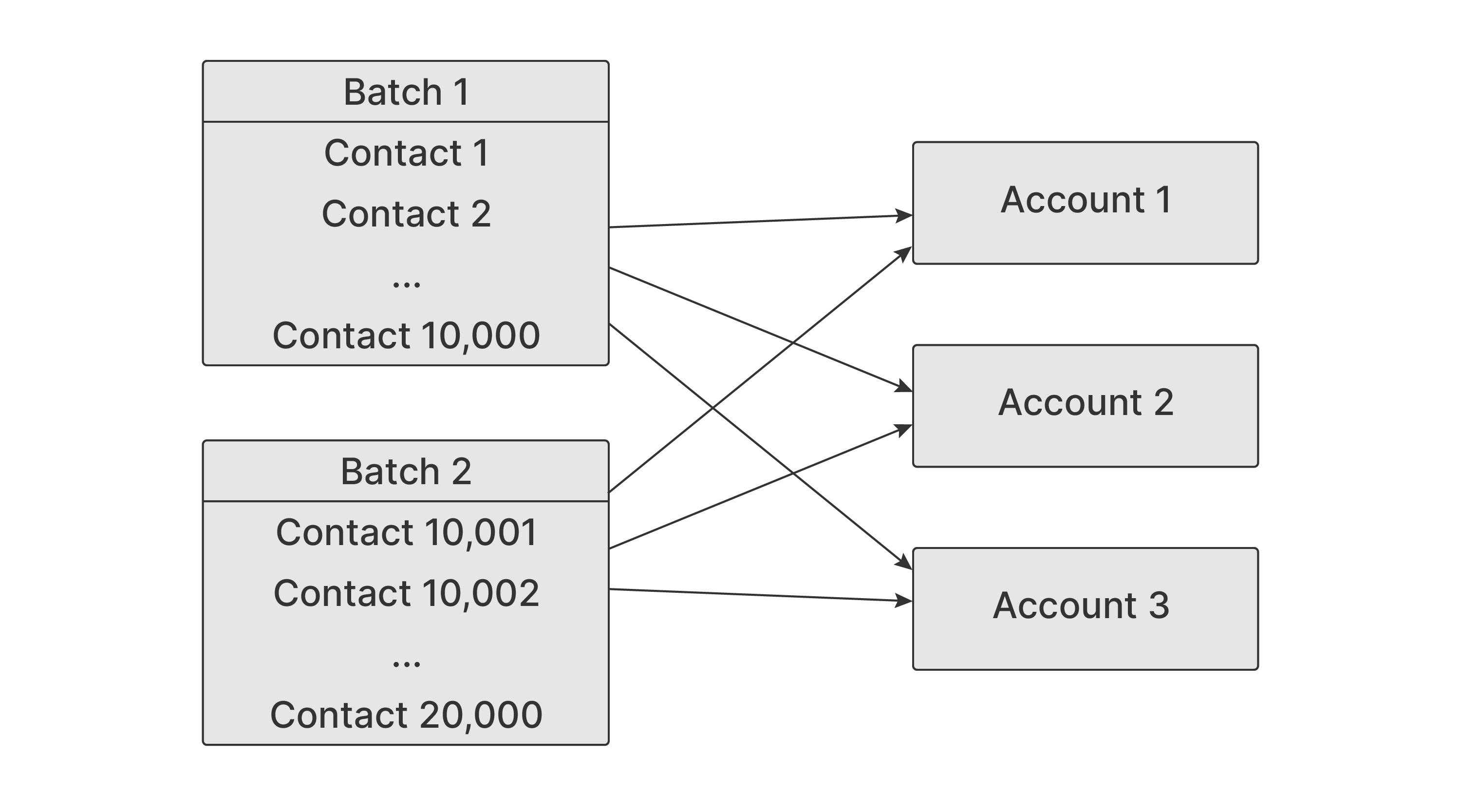Problems arise when the first batch of a deployment locks any records that subsequent batches in the deployment also need to lock. Let’s imagine a deployment of two batches, with each batch containing a Contact belonging to the same Account. If all goes well, Salesforce will perform these steps: