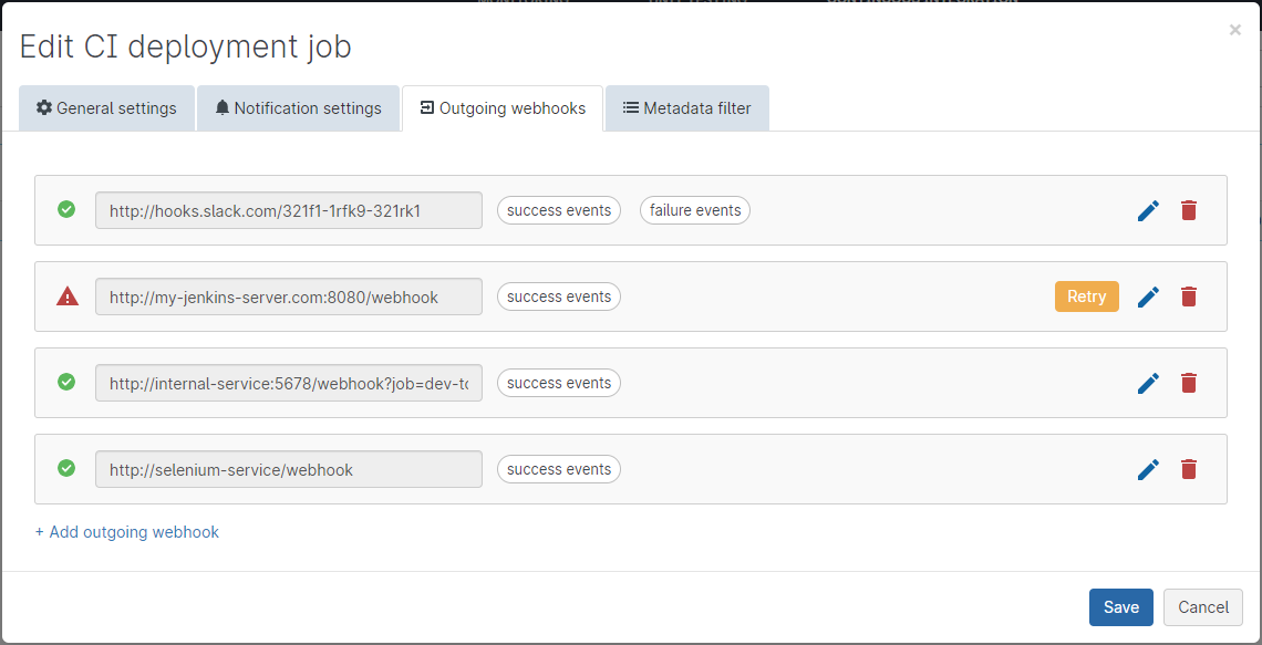 Setting up a CI job with an outgoing webhook