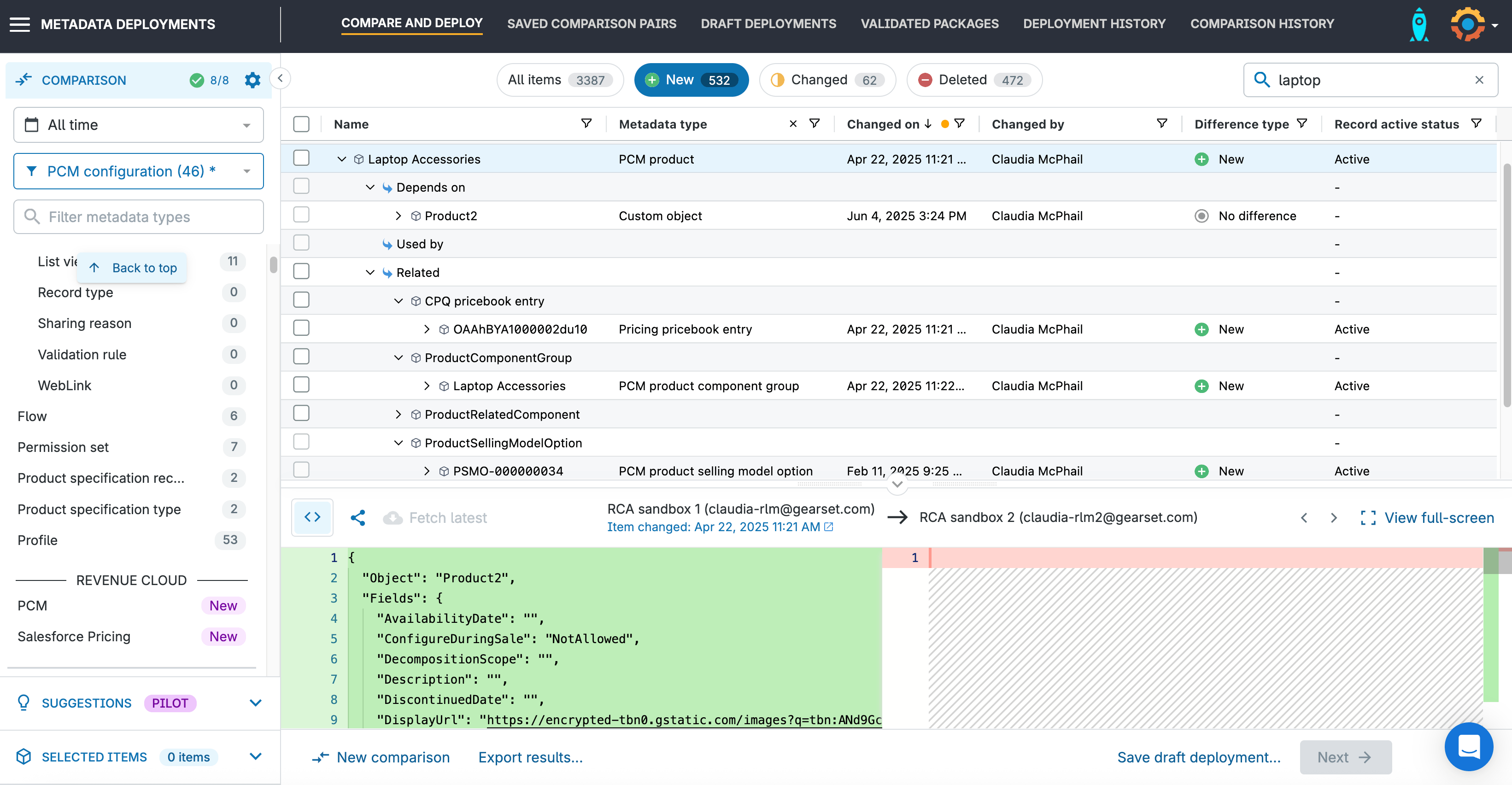 Working with Revenue Cloud Advanced involves dealing with complex metadata, tightly coupled configuration data, and high-stakes changes that directly impact quoting, billing, and revenue. Gearset makes RCA deployments straightforward and successful, deploying metadata and configuration in a single package.