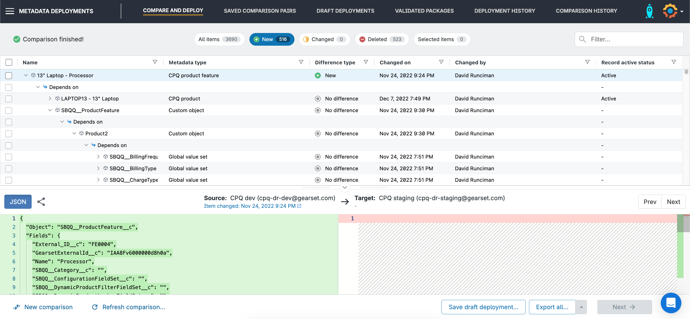 You can build a deployment package that includes CPQ configuration and metadata, and see all the dependencies between them. Gearset will warn you of missing dependencies when you deploy, and offer to add them to the deployment package.
