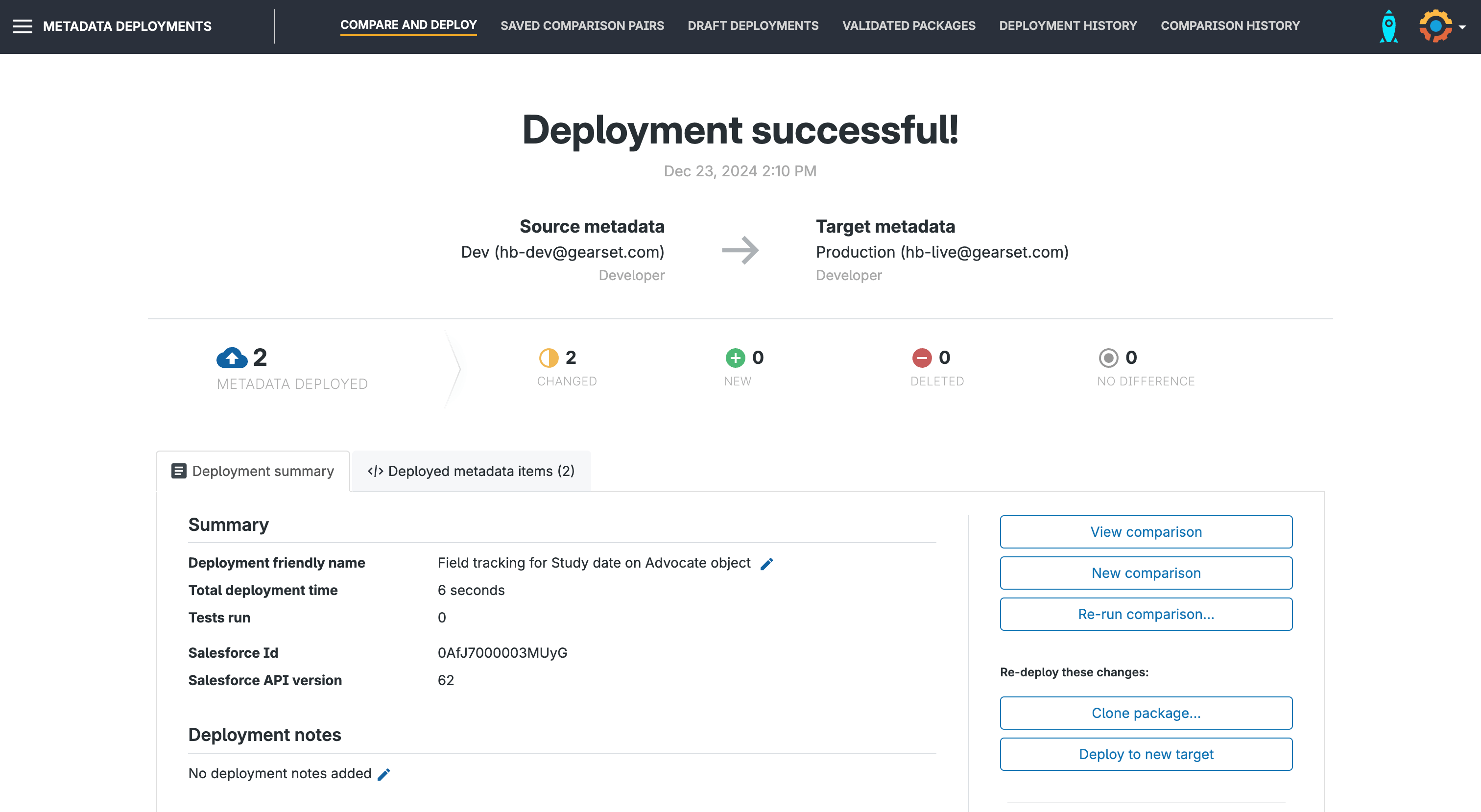 Take the headache out of field tracking history and increase your deployment success rate with Gearset compare and deploy — you can get access to the full Gearset platform free for 30 days, with nothing to install in your orgs and no credit card details needed.