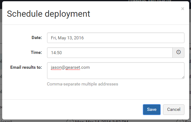 3. Click Schedule deployment, under the “Actions” column. Choose the date and time for the deployment to run, and click Save. That’s it!
