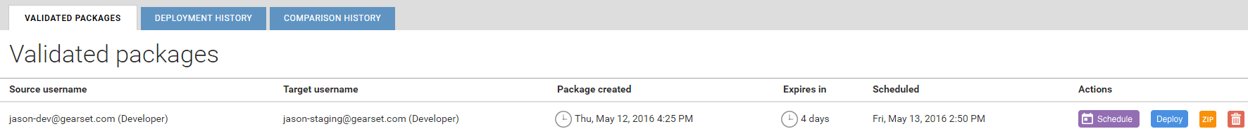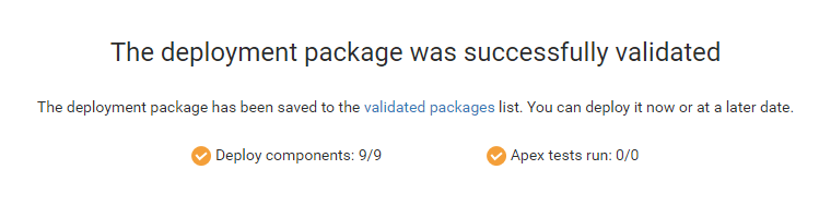 Tip: If you want to schedule the deployment immediately after validating the package, you can also click the “Schedule deployment” button on the package validation success page. You’ll be able to view and edit the schedule details in your Validated Package history later.