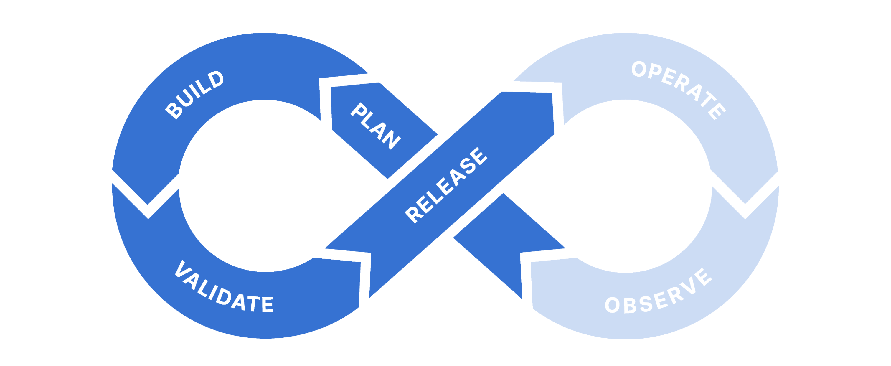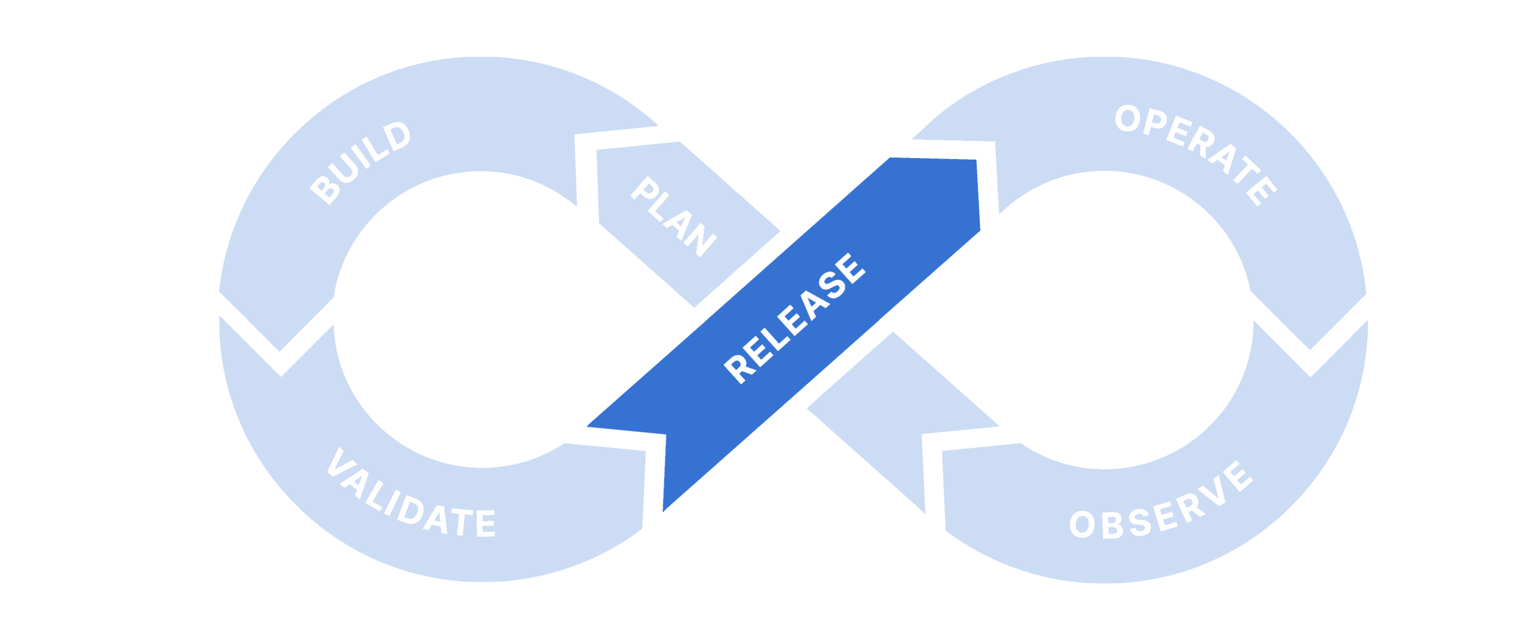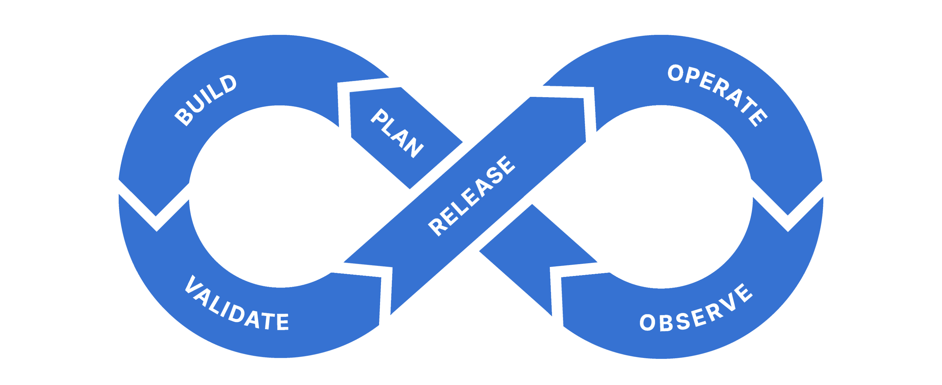 Where the standard development lifecycle is generally depicted as a circle, the DevOps lifecycle is shown as an infinity loop. This represents the agile, iterative approach to the entire development process, in contrast to legacy approaches to release management such as the waterfall methodology.