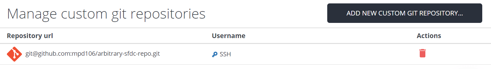 In the Manage custom git repositories section, click the Add new custom git repository button.