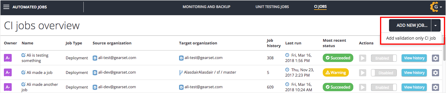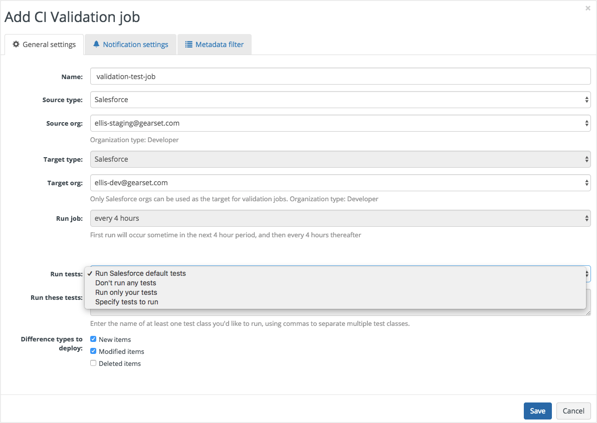 With Gearset’s Salesforce CI/CD solution, you can set up validation-only CI jobs between any of your Salesforce orgs, so you can catch any problematic changes early and make sure that when the time comes to deploy, you’ll be able to release successfully.