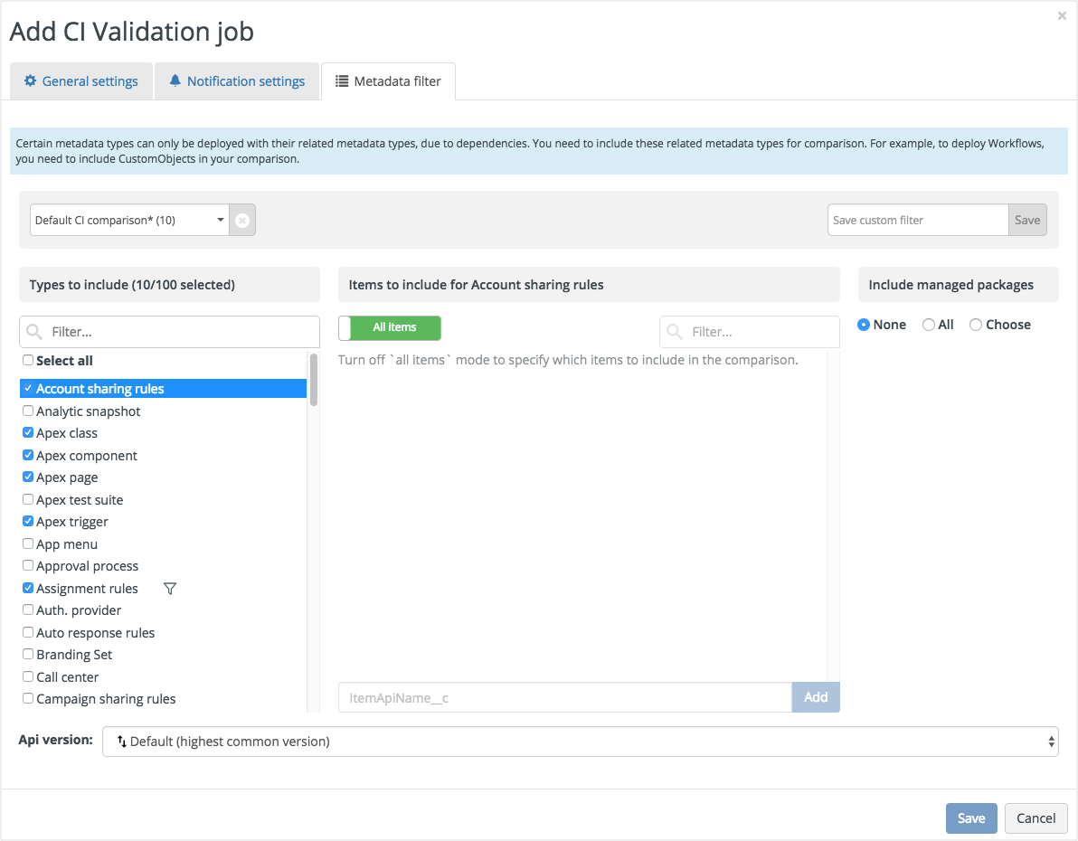 With simple configuration and granular control over your CI jobs, you can unlock all the benefits of continuous delivery with Pipelines, Gearset’s Salesforce CI/CD solution. Easily configure regular CI jobs and now run validation-only CI jobs too, to make sure every change you’re working on can be deployed successfully for a reliable release pipeline.