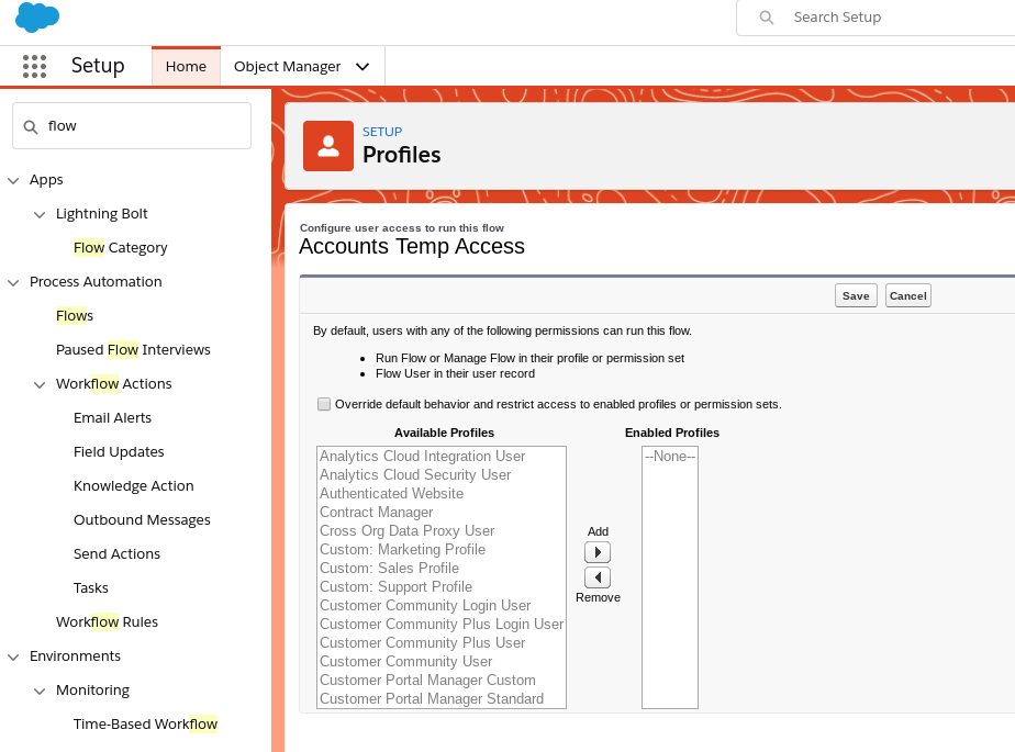 We help users to solve their problems every day, so we’re good at getting to the bottom of these kinds of puzzles. But this was an especially interesting puzzle because flowAccesses isn’t listed among the other items of Profile metadata in Salesforce’s metadata API developer guide. In fact, as of yet, there’s no Salesforce documentation anywhere on flowAccesses.