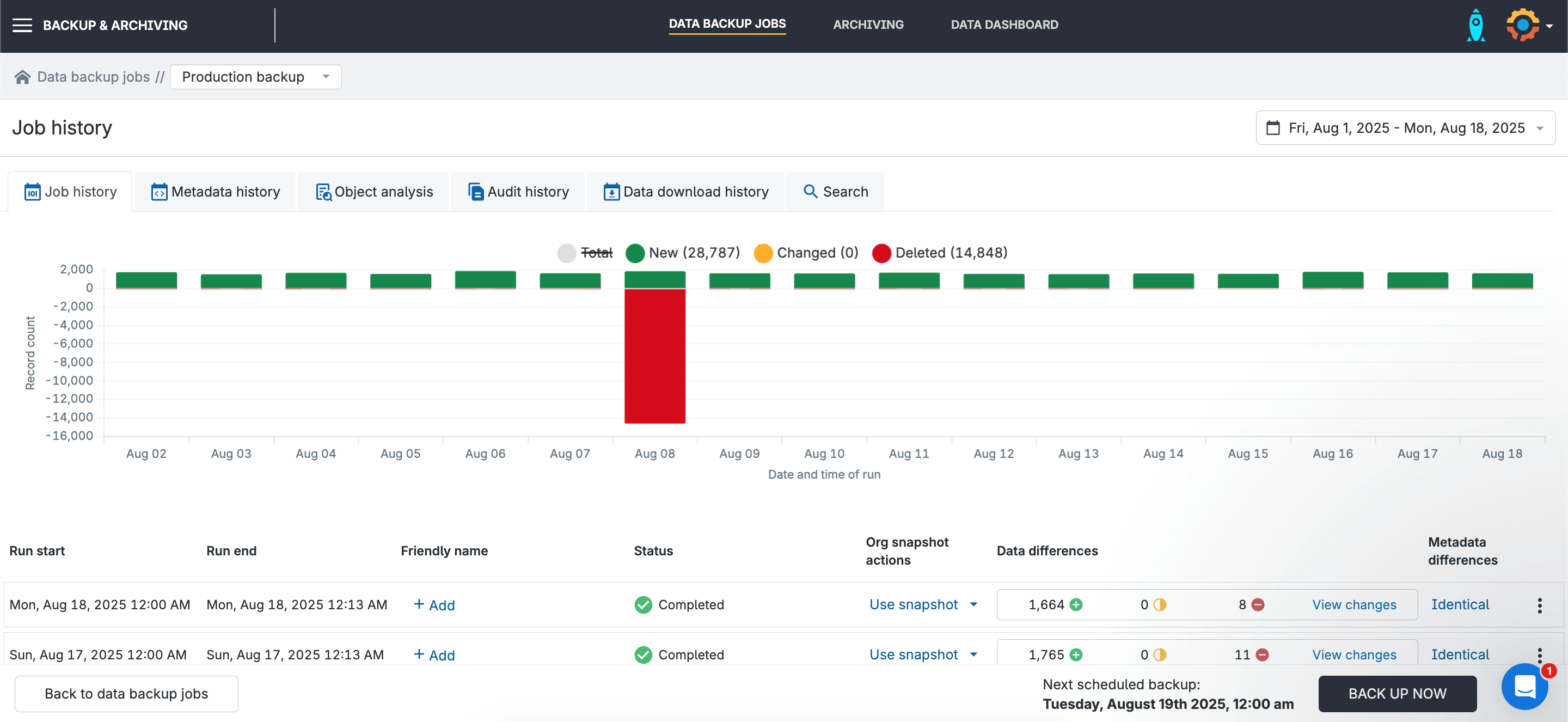 Manual backup processes are hard to keep up with, don’t scale, and leave too much room for error. Automating your backups and archive runs ensures consistent coverage, reduces overhead, and limits the impact of manual errors — without depending on someone to remember.