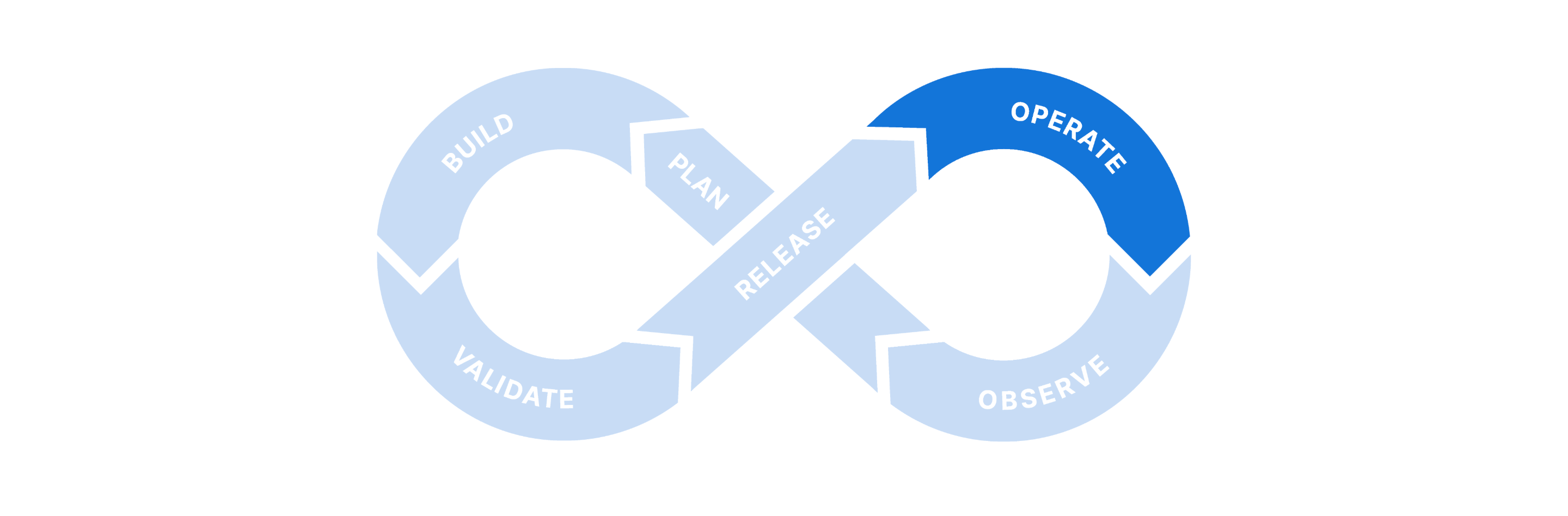 As the DevOps lifecycle is continuous — visualized as an infinity loop — the operate stage isn’t just an end goal. It’s closely related to the observe stage where you understand how well it’s running, using observability tools to detect risks early, surface trends, and plan improvements. Together, the operate and observe stages give your team the real-time control to stay stable and the long-term visibility to evolve.