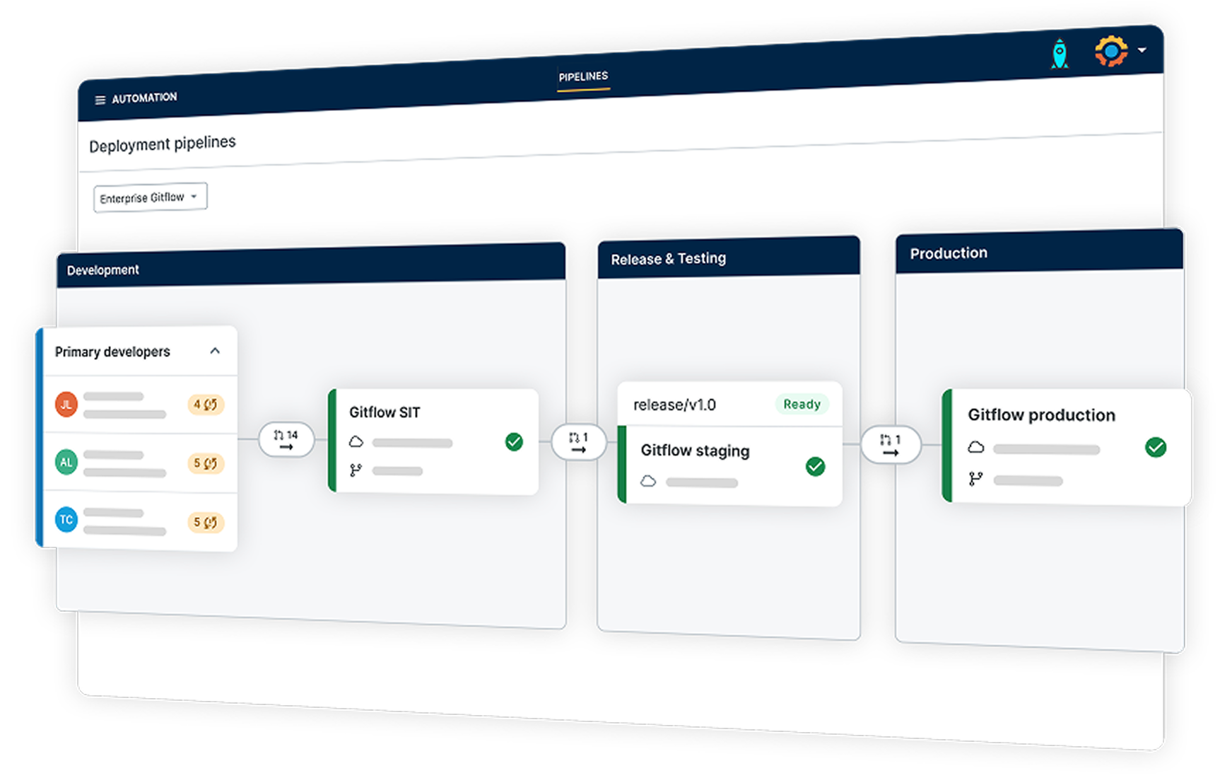 Gearset’s unique merge algorithm understands Salesforce metadata, so unlike Git, it can differentiate between genuine conflicts and unnecessary conflicts. For example, sometimes conflicting changes within the same XML tag lead to the same behaviour in a Salesforce org. Your VCS will still consider it a conflict, whereas Gearset knows this doesn’t represent a genuine issue, so will automatically resolve the conflict. Merge conflicts happen less often in Gearset, and when they do occur, they indicate genuine issues.